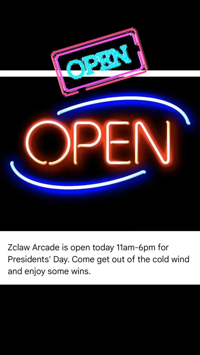 Zclaw Arcade is open today 11am-6pm for Presidents' Day. Come get out of the cold wind and enjoy some wins. #arcade #thingstodo #sedona #datenight #familyfun